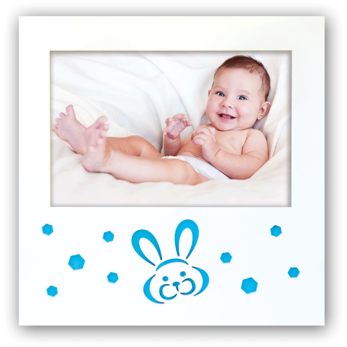 - Design ludique avec un lapin bleu, parfait pour les photos d’enfants