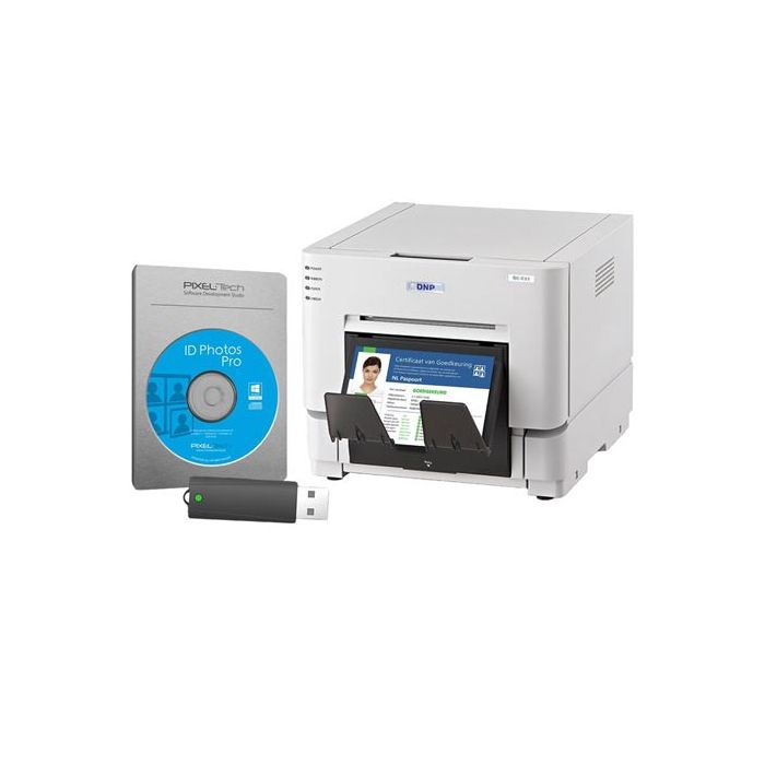 De ID Photos Pro dongle-set met DNP RX1HS printer is een complete, professionele oplossing voor het maken en printen van officiële pasfoto’s. De software ondersteunt meer dan 280 documenten in 87+ landen, biedt automatische biometrische controles en kan direct koppelen met de RDW voor digitale pasfoto-upload. Dankzij de dongle gebruik je de software flexibel op meerdere computers.