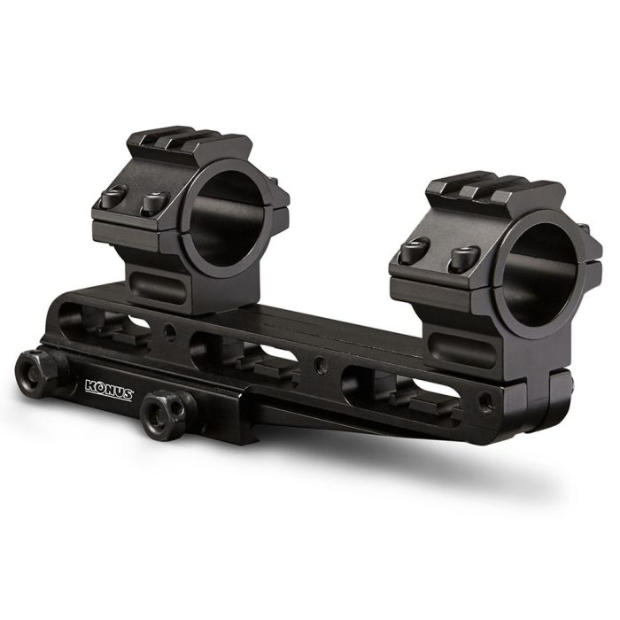 Découvrez la polyvalence de la fixation universelle Cantilever de Konus. Cette solution pratique vous permet de monter votre lunette de visée sur votre arme sans effort, en la plaçant plus en avant. Cela crée non seulement de l’espace pour une loupe, mais offre aussi une position plus confortable pour vos yeux et un champ de vision généreux. La fixation Cantilever est conçue pour des tubes de 25,4 mm ou 30 mm, avec plus d’options de réglage que jamais. Vous pouvez ainsi installer votre lunette exactement comme vous le souhaitez et réduire nettement vos risques de manquer votre cible. Parfaite pour tout chasseur ou tireur qui veut tirer le meilleur de son équipement.