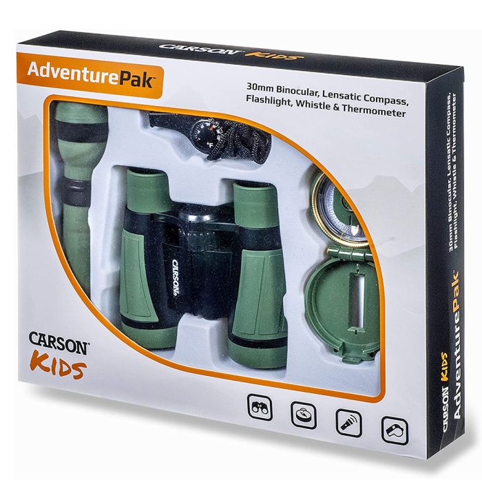 Le Kids Outdoor AdventurePack de Carson contient tout ce qu’il faut pour les petits curieux qui adorent découvrir et partir à l’aventure. Ce kit junior, avec des accessoires légers comme une paire de jumelles, une lampe de poche, un sifflet, une boussole et un sac pratique, transforme chaque après-midi en plein air en un vrai plaisir.