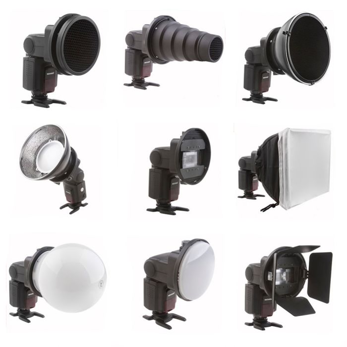 Les très appréciés softbox, boule diffuse et mini réflecteur offrent une diffusion douce de la lumière. En contrepartie, la grille nid d’abeille, le snoot conique et le kit de volets concentrent la lumière avec force, idéal pour des portraits dramatiques ou de la photo produit. Grâce aux éléments facilement interchangeables, vous passez rapidement d’un style à l’autre.