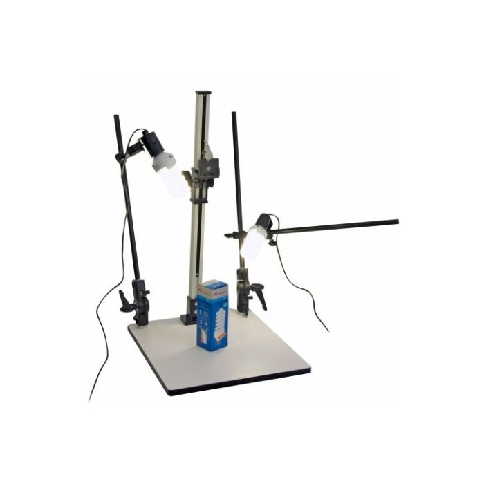 La table de reproduction Falcon Eyes CS730 élève votre photographie à un tout autre niveau. Grâce à ses deux supports de lampe flexibles, vous créez facilement un éclairage parfait pour des prises de vue nettes et détaillées. Fixez votre appareil photo (jusqu’à 2,5 kg) directement sur la table et réalisez des reproductions et photos de produits professionnelles vues de haut, en plongée. Expérimentez avec une hauteur maximale de caméra de 72 cm et donnez vie à toutes vos créations. Les supports de lampe sont équipés d’une douille E27, compatibles avec des ampoules jusqu’à 250W, pour toujours ajuster l’ambiance et l’intensité qui conviennent. Notez que les ampoules ne sont pas fournies d’origine. Choisissez simplement la lampe à lumière du jour idéale pour votre prise de vue. Le plateau de la table offre une taille élégante et pratique de 40x48 cm.